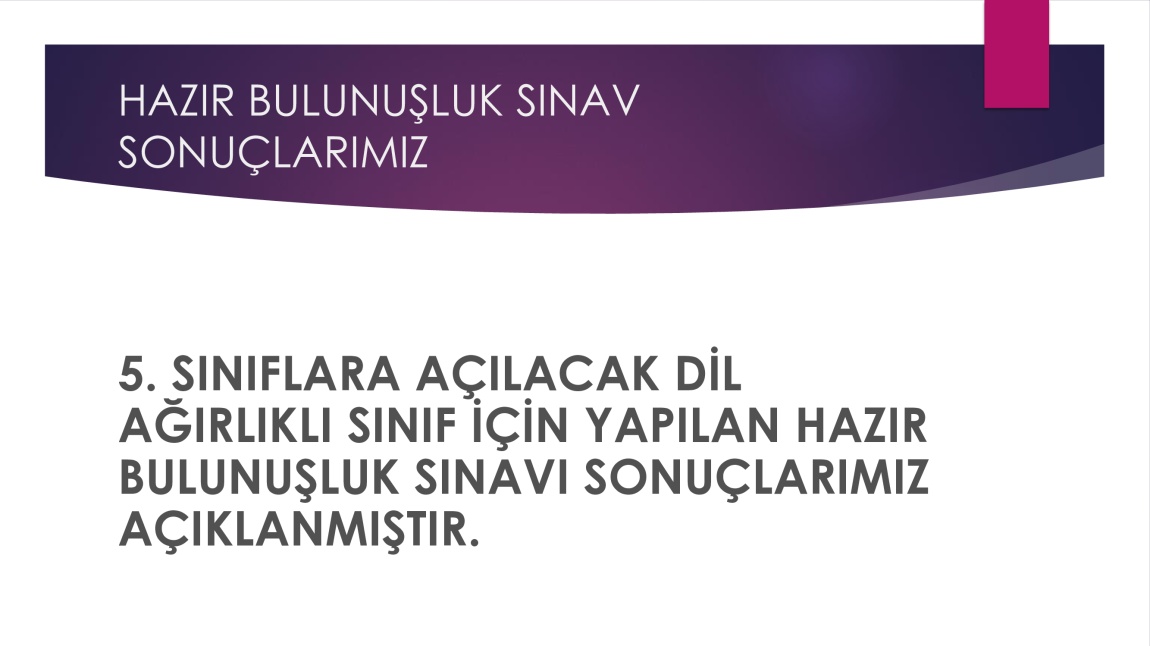 HAZIR BULUNUŞLUK SINAVI SONUÇLARI